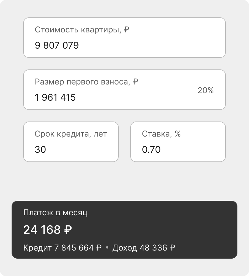- не требует особенных временных затрат, - укладывается в комфортный ипотечный платеж, (сопоставимый со стоимостью аренды) - может быть изменен на другой вариант со временем без окончательного выкупа квартиры у банка, если изменились предпочтения.